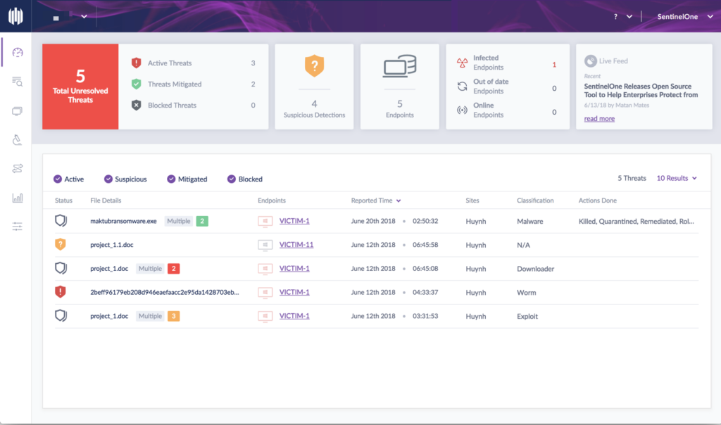 Devices self defend and heal themselves by stopping processes, quarantining, remediating, and even rolling back events to surgically keep endpoints in a perpetually clean state. Hunt more and pivot less.